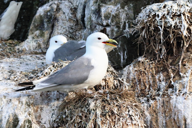 Kittiwake are a true seabird, not really a gull. We They are distributed all over the islands and in a colony on the cliffs by Seahouse Golf Course